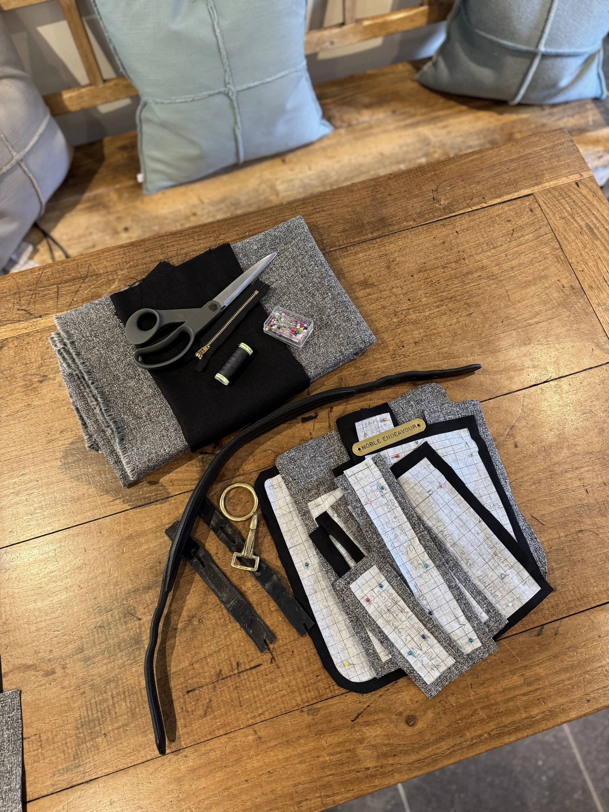 We conceptualise the bag design, focusing on utilising the original leather pieces to retain character and history, and create the pattern.
